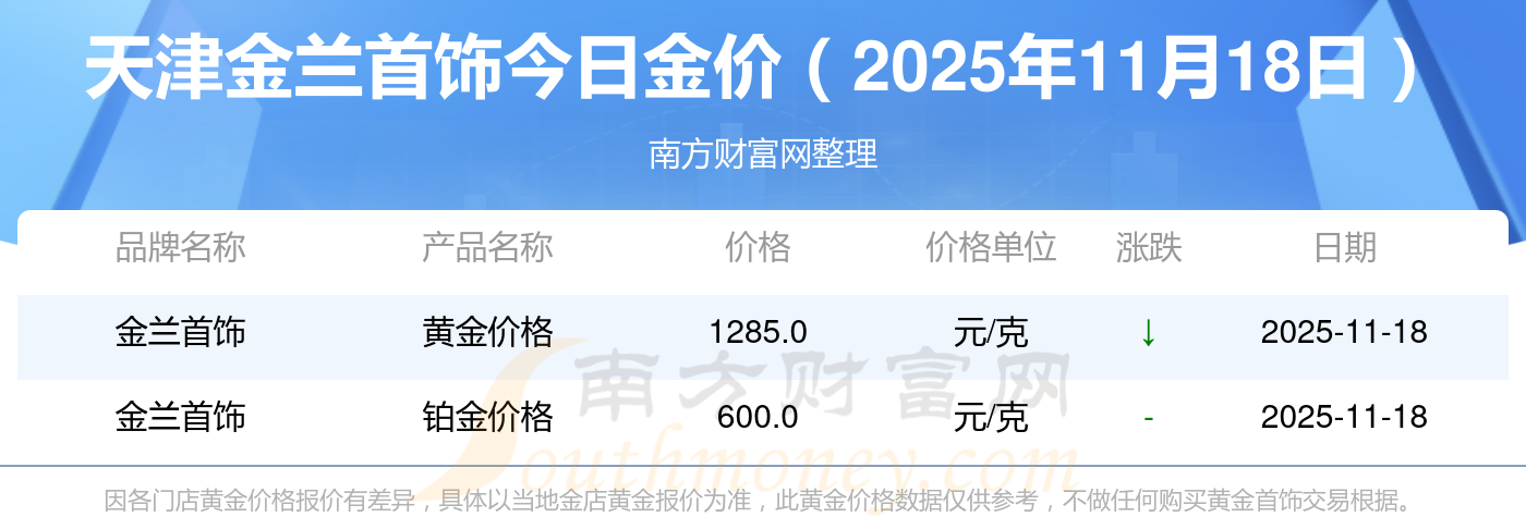 2025年11月18日金兰首饰金条多少钱1克 现在天津金兰首饰黄金价格查询