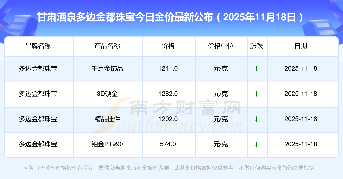 甘肃酒泉多边金都珠宝今日金价多少钱一克