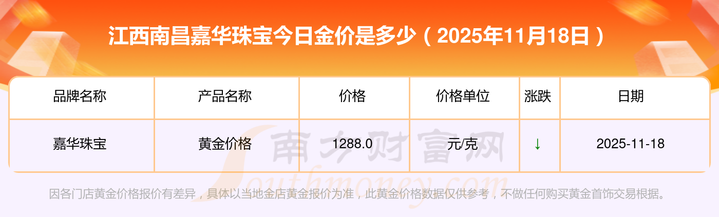 今日黄金价格查询_现在金价黄金一克多少钱,黄金价格是多少钱一克?江西南昌嘉华珠宝金价今日价格: