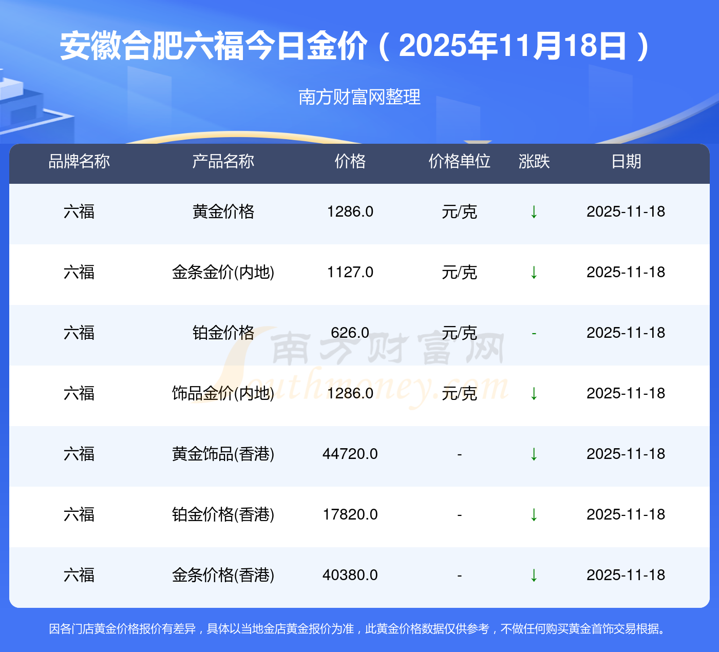 安徽合肥六福一克黄金在当下的价位是多少?
