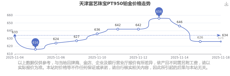 今日(2025年11月18日),626.0元/克是天津富艺珠宝PT950铂金的价格标准。