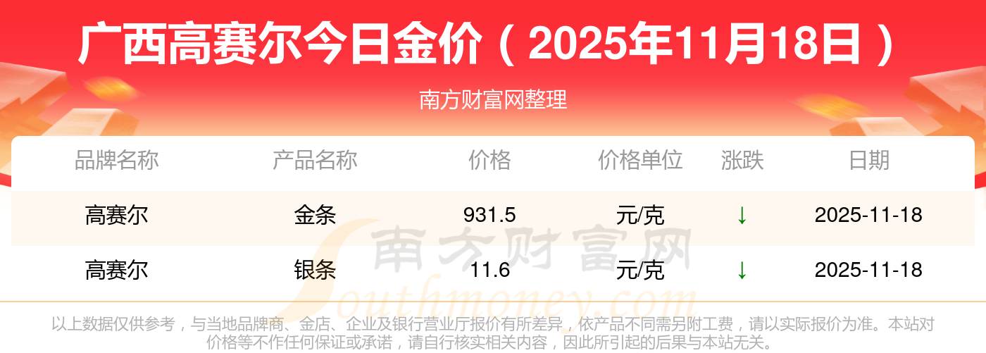 2025年11月18日广西高赛尔现在购买一克黄金需要支付多少钱?黄金价格1288.0元/克,铂金价格626.0元/克,饰品金价(内地)1288.0元/克,黄金饰品(香港)44770.0,铂金价格(香港)17820.0,金条价格(香港)40390.0,金条金价(内地)1127.0元/克,黄金价格1285.0元/克,铂金价格600.0元/克,足金价格1285.0元/克,黄金价格1257.0元/克。