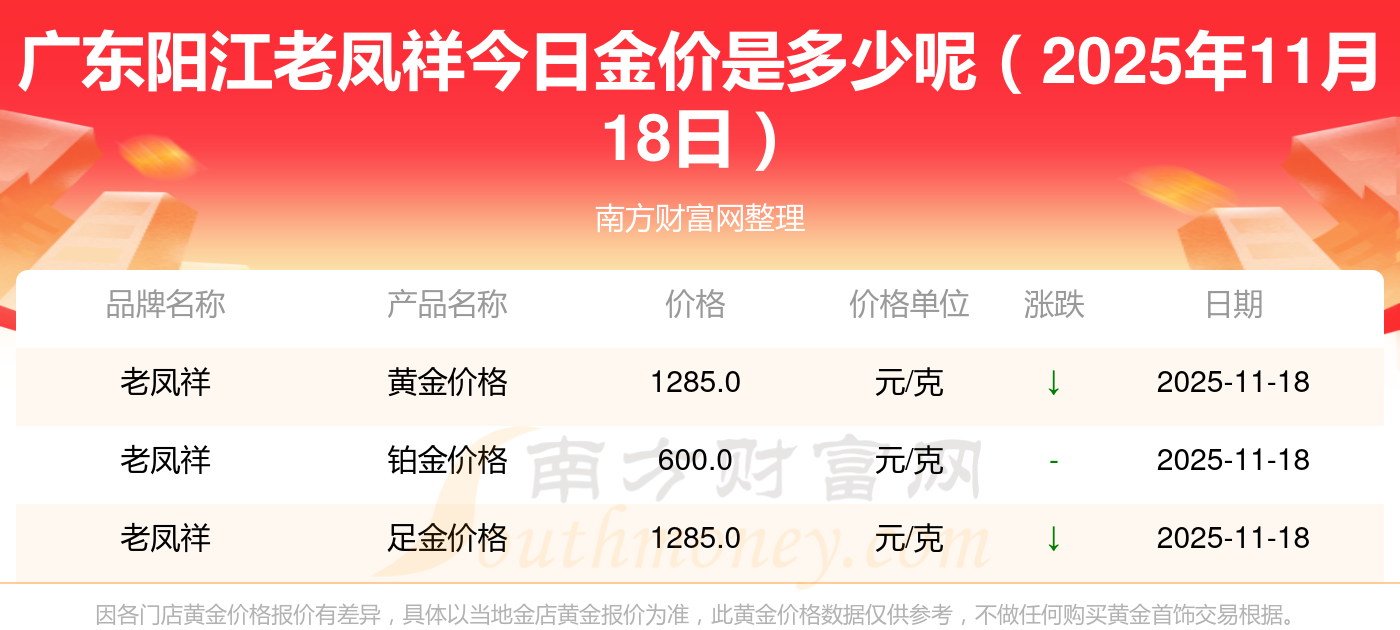 现在广东阳江老凤祥黄金价格表_广东阳江老凤祥黄金多少钱一克(2025年11月18日)