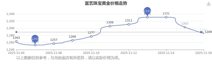 今日富艺珠宝黄金价格为1286.0元/克。