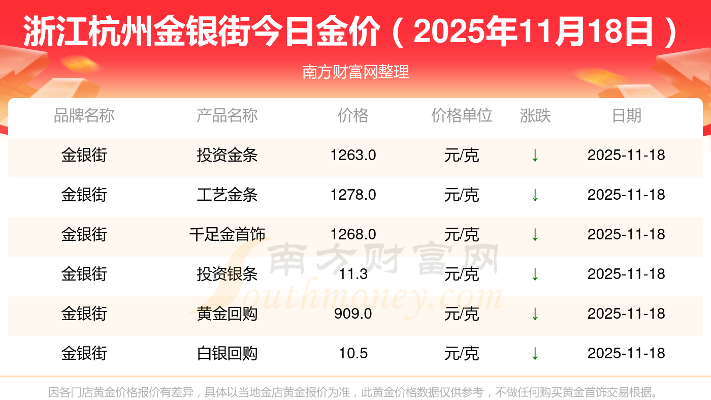 2025年11月18日浙江杭州金银街黄金今日价格最新查询,今日金银街最新黄金价格是多少钱,随小编来了解一下详情。