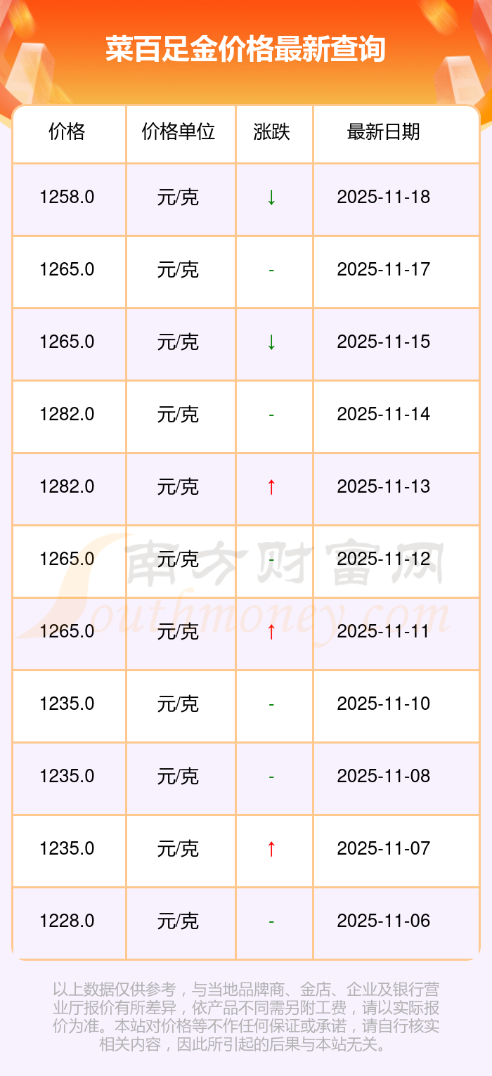 以上数据仅供参考,与当地金店有所差异,请以实际价格为准。