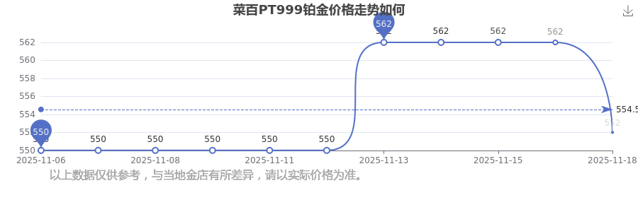 今日(2025年11月18日),菜百PT999铂金最新价格是552.0元/克。