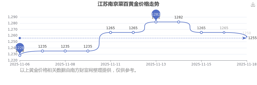 江苏南京菜百黄金价格在 2025年11月18日,其市场价格为 1258.0元/克。