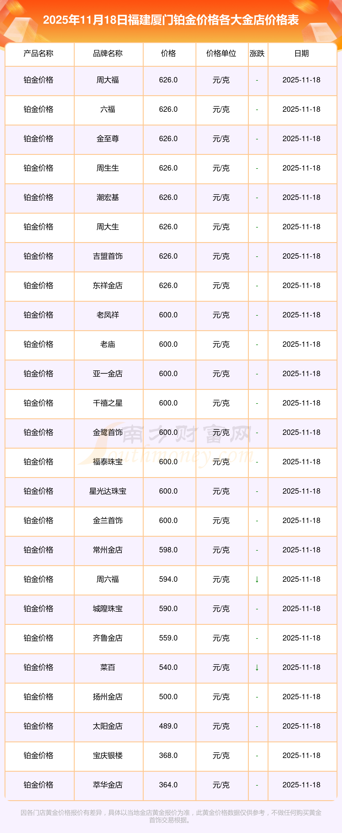 一、 福建厦门各金店铂金价格多少钱1克?福建厦门各金店铂金价格最新详情