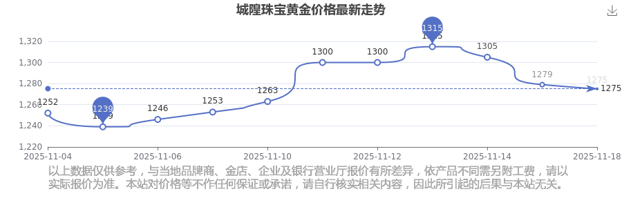 今日城隍珠宝 黄金价格,最新确定为1275.0元/克。