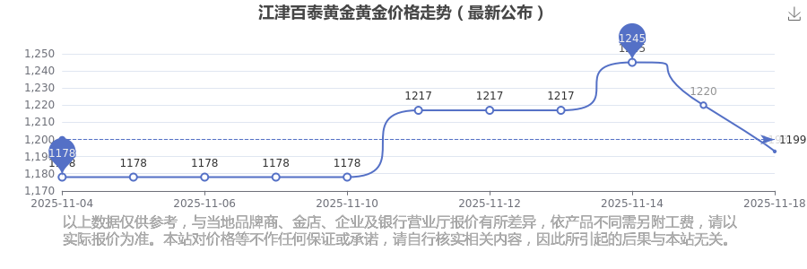 今日(2025年11月18日),1193.0元/克是江津百泰黄金黄金价格的价格标准。