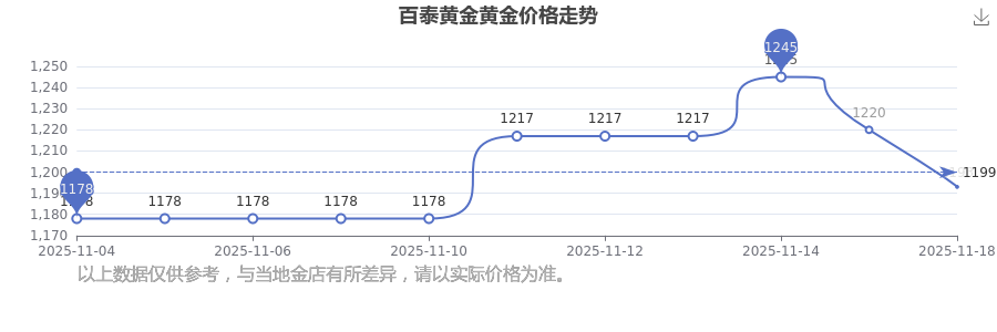 今日(2025年11月18日)百泰黄金黄金价格的价格为1193.0元/克。