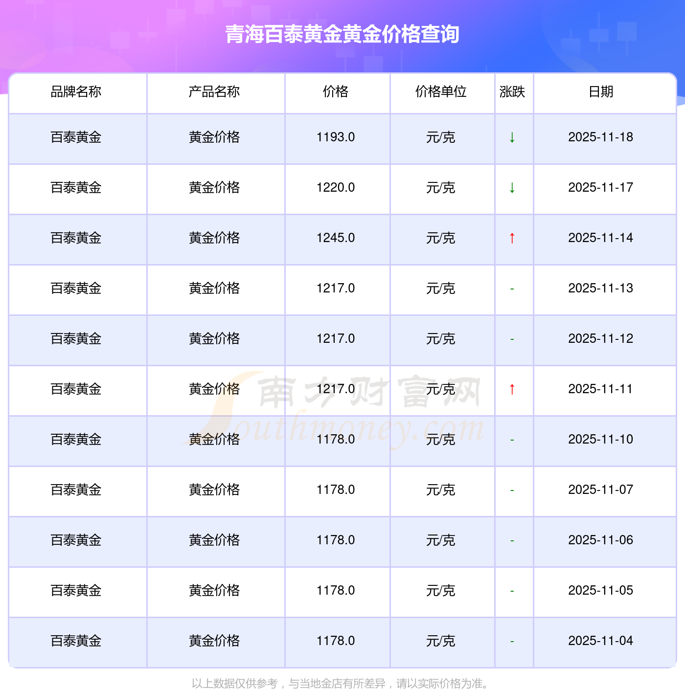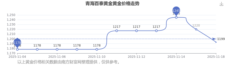 青海百泰黄金在 2025年11月18日,黄金价格的售卖价格是 1193.0元/克。