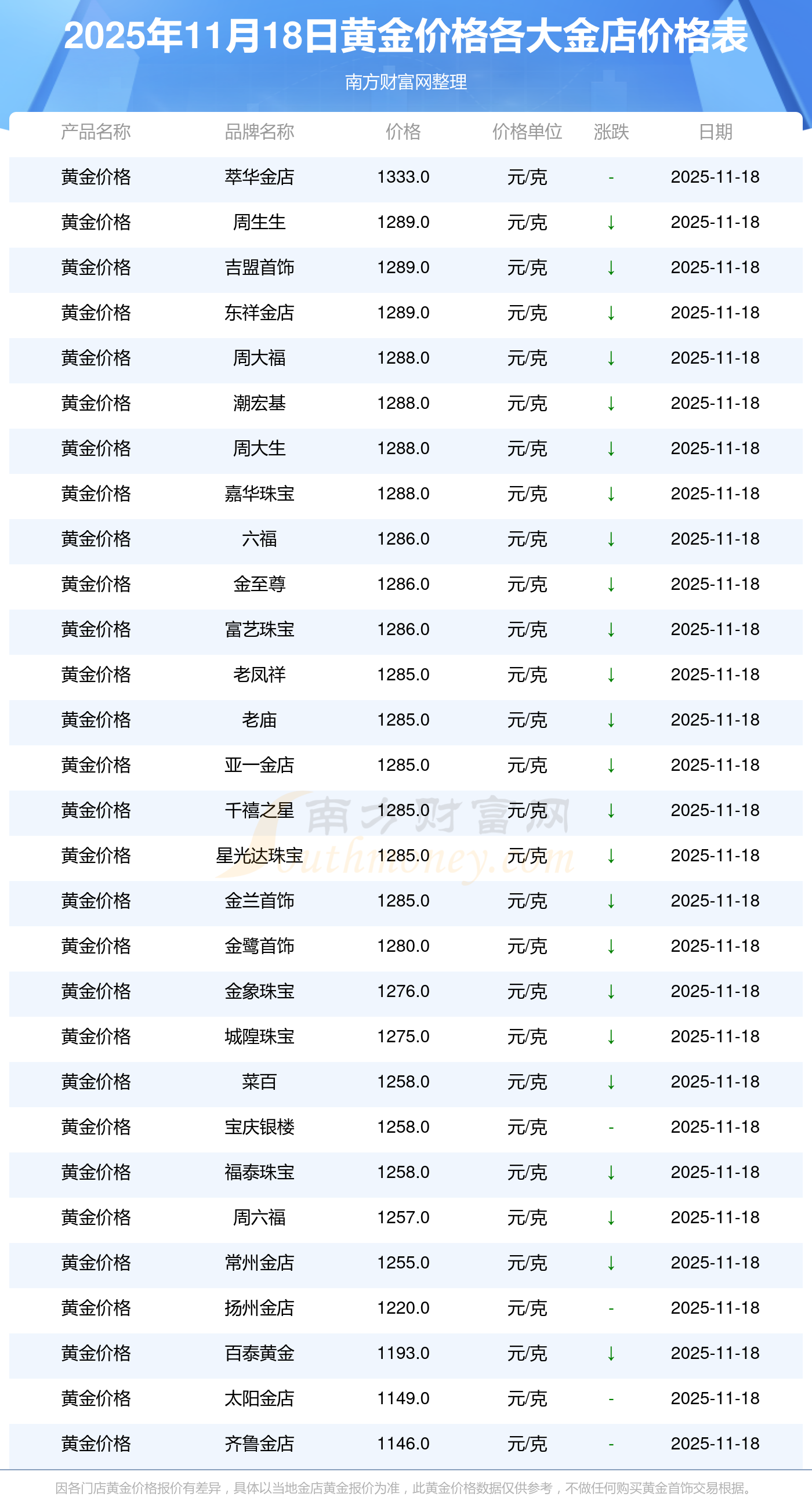 以上数据仅供参考,与当地金店有所差异,请以实际价格为准。