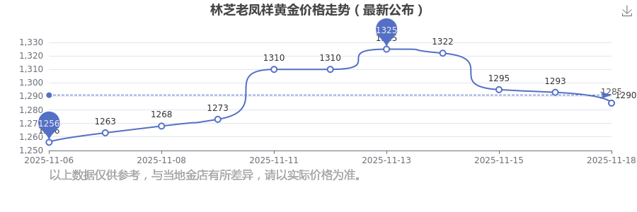 林芝老凤祥黄金价格每克多少钱,请问今日一克黄金的零售价格是多少?今日林芝老凤祥黄金价格查询,林芝老凤祥在 2025年11月18日,黄金价格的售卖价格是 1285.0元/克。