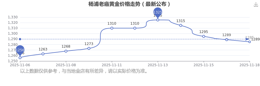 今日(2025年11月18日),杨浦老庙黄金价格的定价为 1285.0元/克。