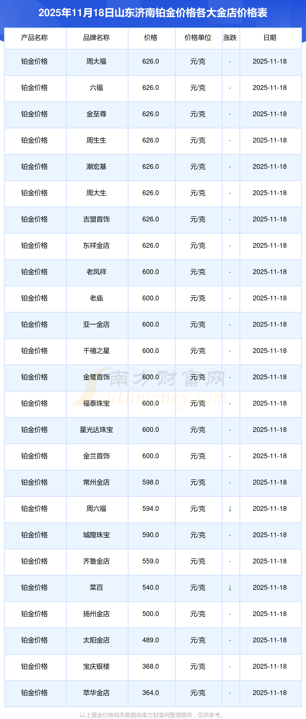 一、 山东济南各金店铂金价格多少钱1克?山东济南各金店铂金价格最新详情