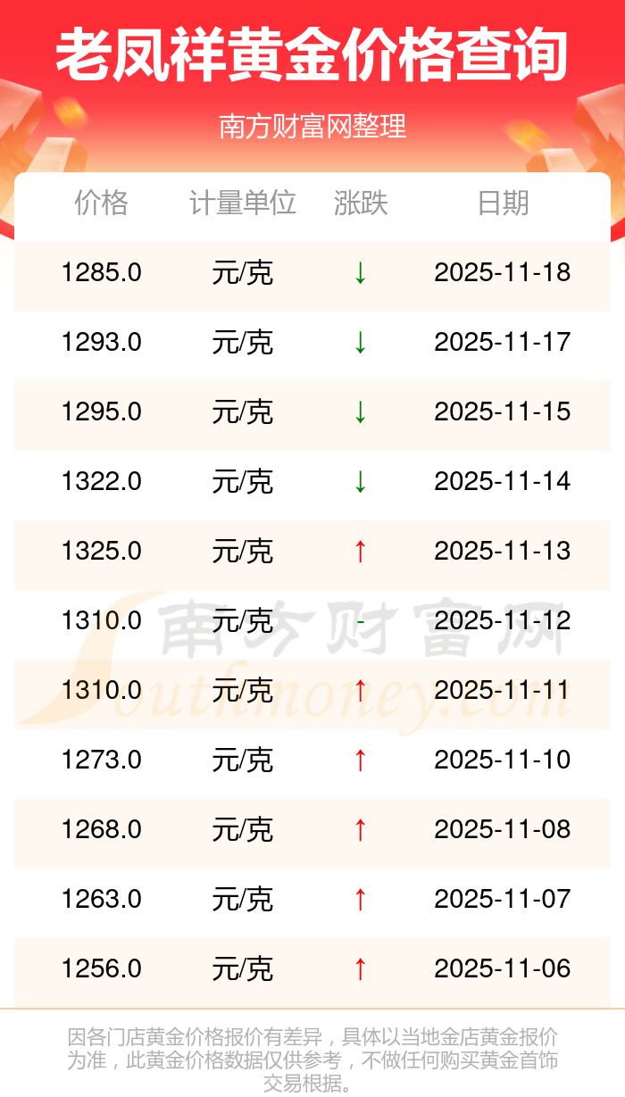老凤祥 黄金价格于今日的最新挂牌价为1285.0元/克。