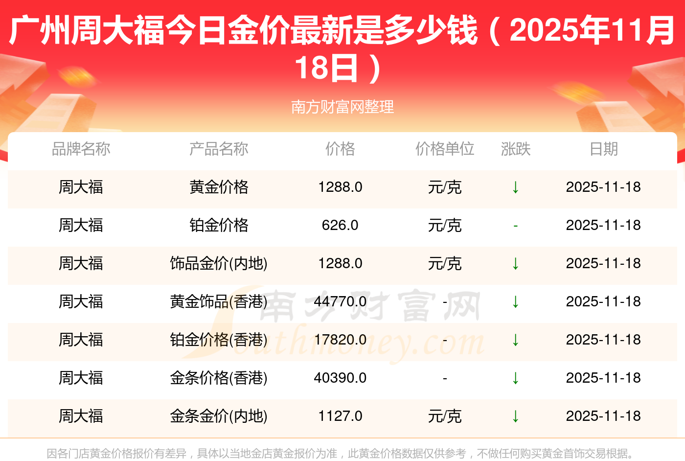黄金价格1288.0元/克,铂金价格626.0元/克,饰品金价(内地)1288.0元/克,黄金饰品(香港)44770.0,铂金价格(香港)17820.0,金条价格(香港)40390.0,金条金价(内地)1127.0元/克,黄金价格1285.0元/克,铂金价格600.0元/克,足金价格1285.0元/克,黄金价格1257.0元/克。