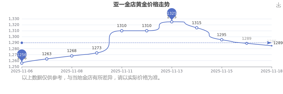1285.0元/克成为亚一金店今日 黄金价格的最新交易的价格。