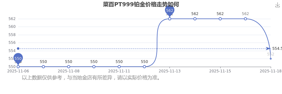 2025年11月18日菜百PT999铂金价格查询:552.0元/克。