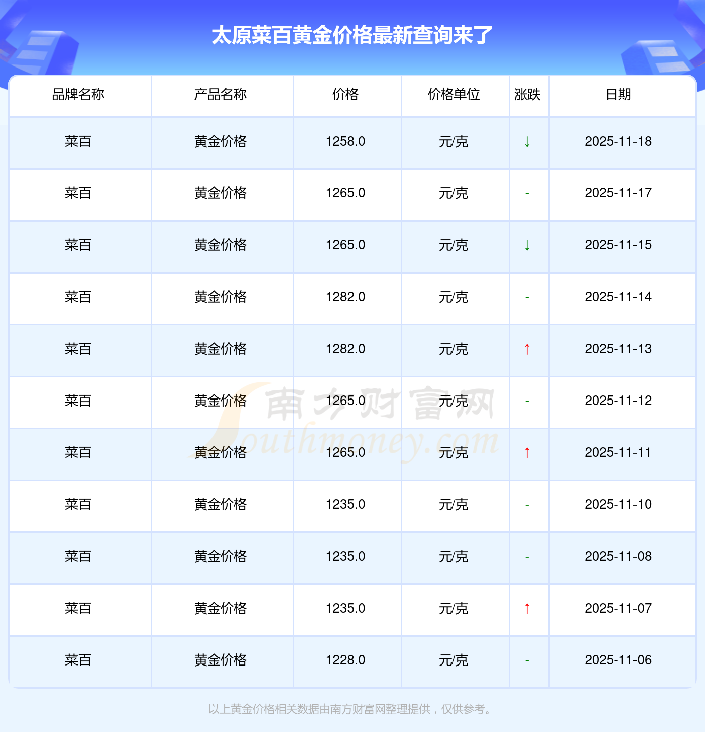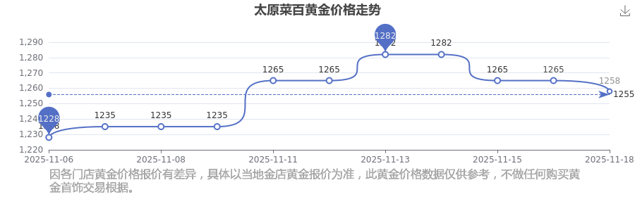 太原菜百黄金价格在 2025年11月18日为 1258.0元/克。