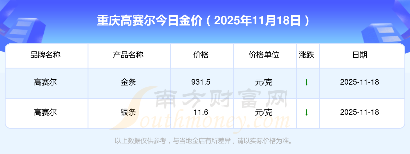 高赛尔黄金价格多少钱一克?今日重庆高赛尔金价表一览