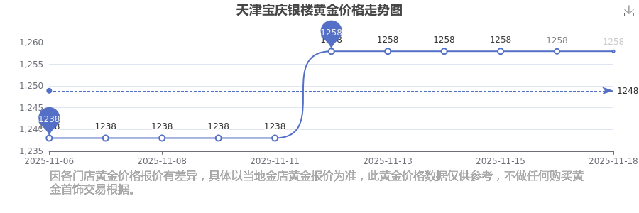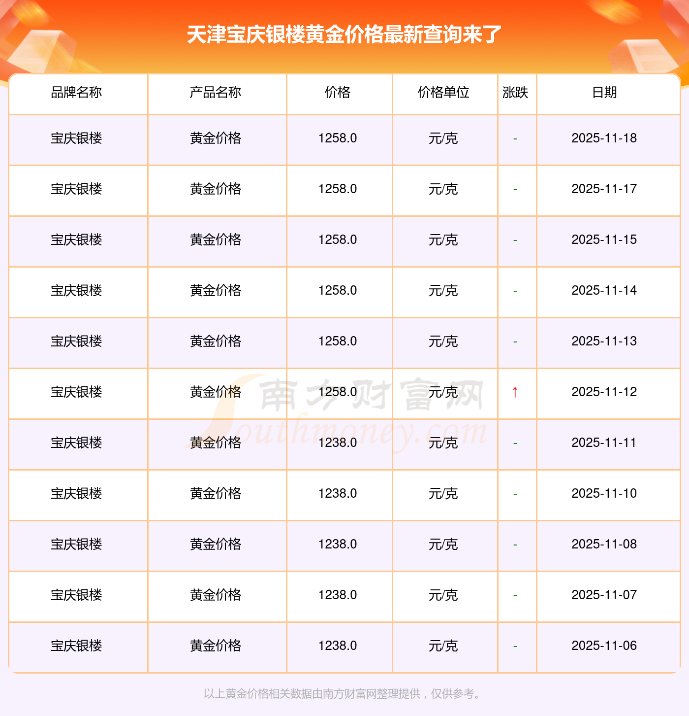 天津宝庆银楼在 2025年11月18日的黄金价格零售价格为 1258.0元/克。