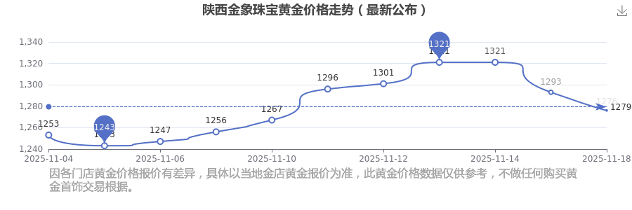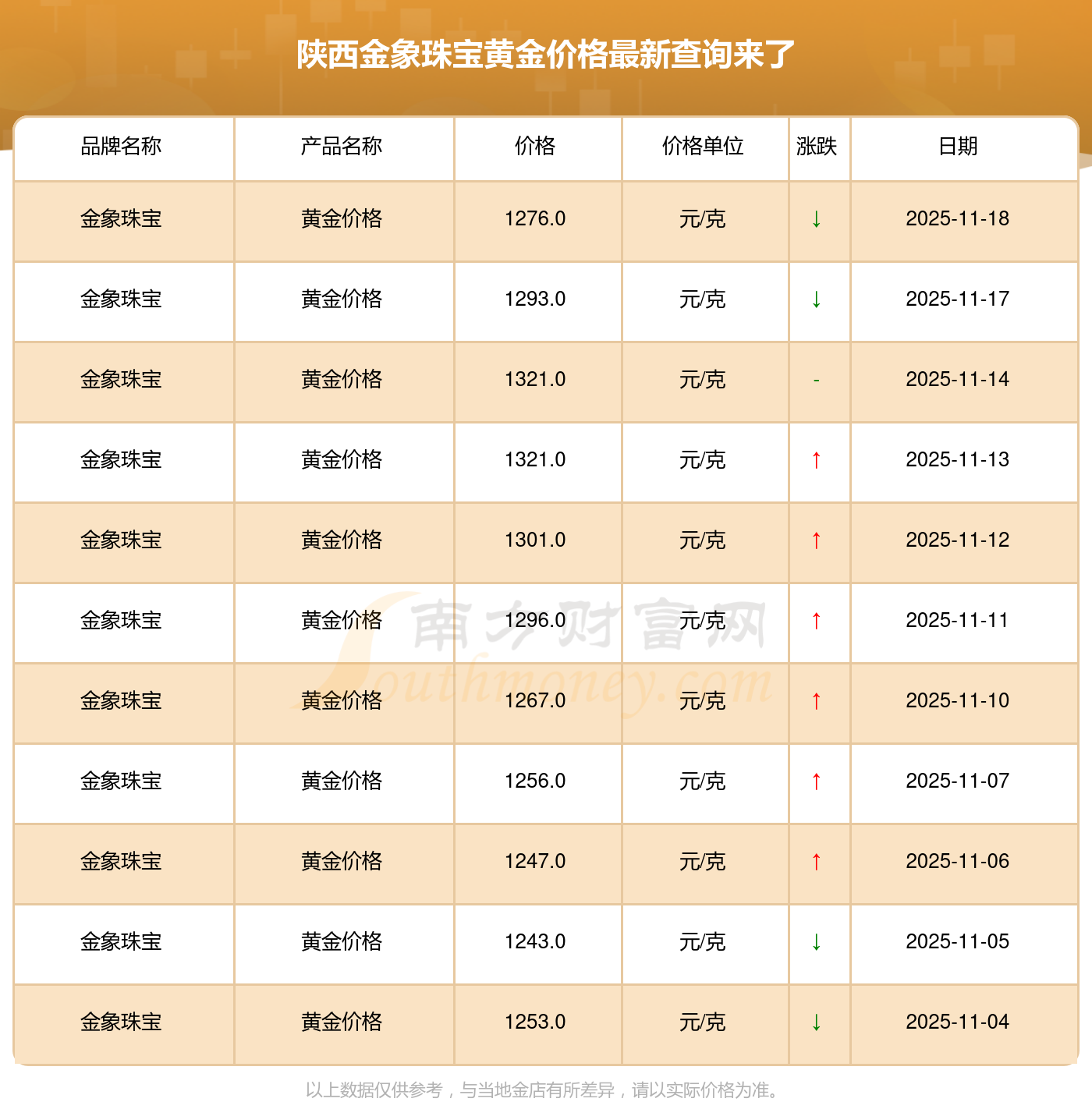 1276.0元/克,此乃陕西金象珠宝于 2025年11月18日黄金价格的挂牌价格。
