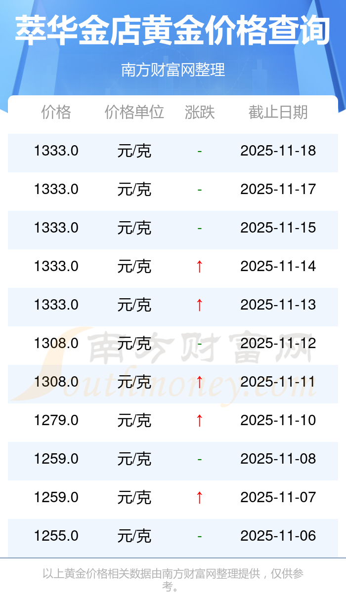 想了解今日黄金价格,现在每克黄金的价格是多少呢?黄金属于优良的导电导热材料,具有良好的导热特性。电子工业中的特殊电路设计常采用它,鉴于其化学稳定性高、抗氧化性强,能够制作高精度电子元件。2025年11月18日萃华金店黄金价格是1333.0元/克。