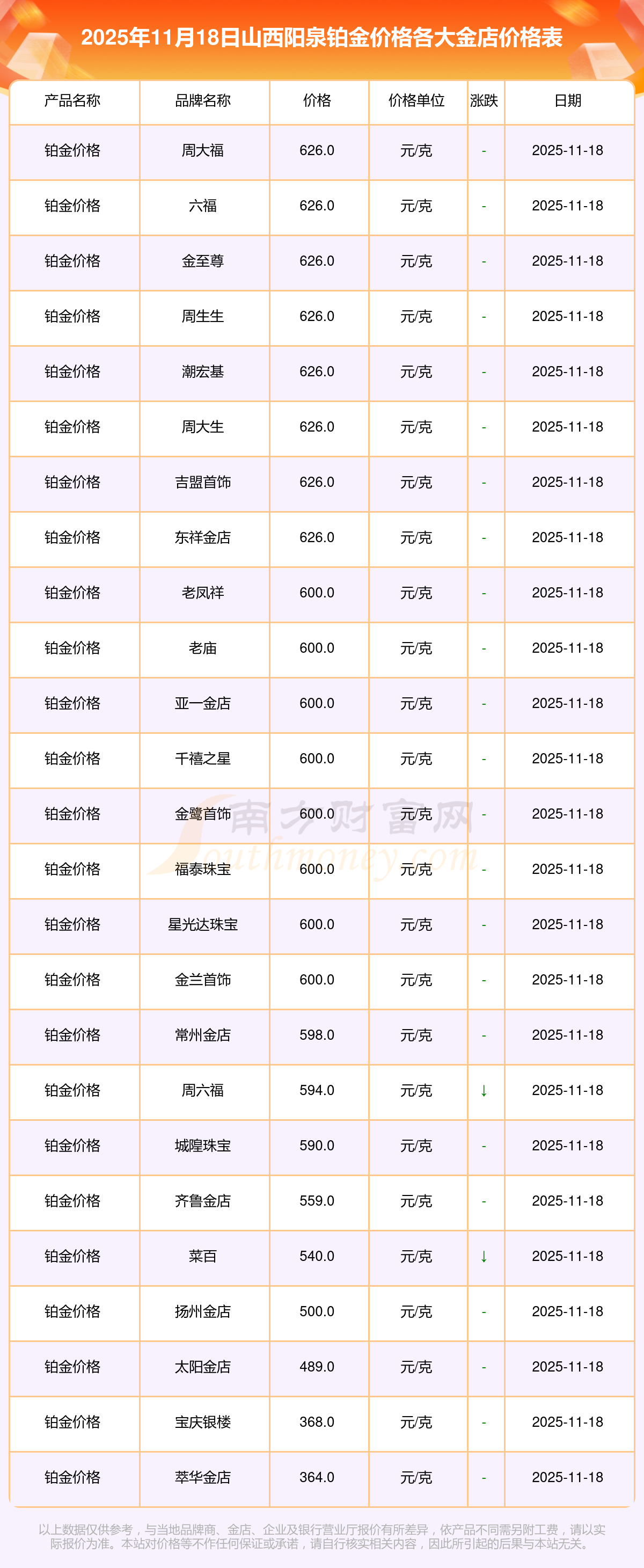 一、 山西阳泉各金店铂金价格多少钱1克?山西阳泉各金店铂金价格最新详情