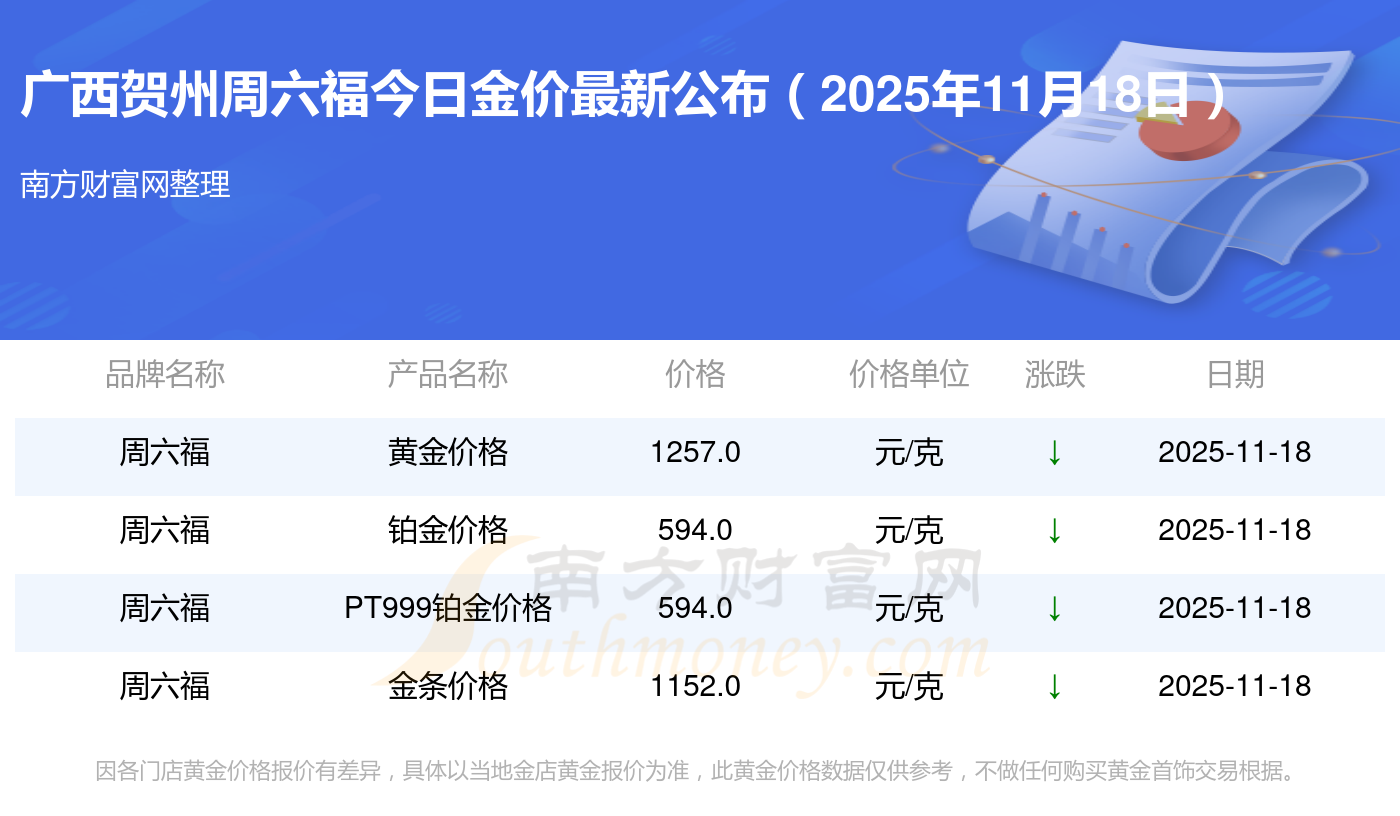 2025年11月18日周六福黄金价格多少钱一克_今日广西贺州周六福金价表一览