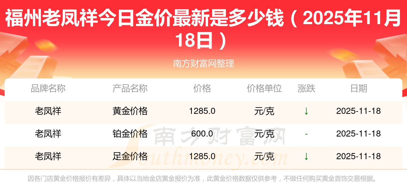 今日黄金价格查询_现在金价黄金一克多少钱,黄金价格是多少钱一克?福州老凤祥,现在一克黄金定价多少?黄金价格1288.0元/克,铂金价格626.0元/克,饰品金价(内地)1288.0元/克,黄金饰品(香港)44770.0,铂金价格(香港)17820.0,金条价格(香港)40390.0,金条金价(内地)1127.0元/克,黄金价格1285.0元/克,铂金价格600.0元/克,足金价格1285.0元/克,黄金价格1257.0元/克。