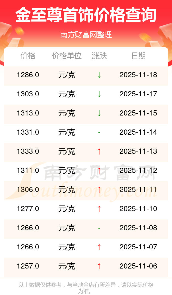 2025年11月18日金至尊首饰价格为1286.0元/克。