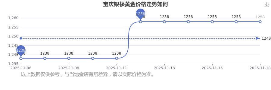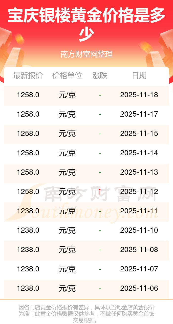 今日宝庆银楼黄金价格的价格是1258.0元/克。