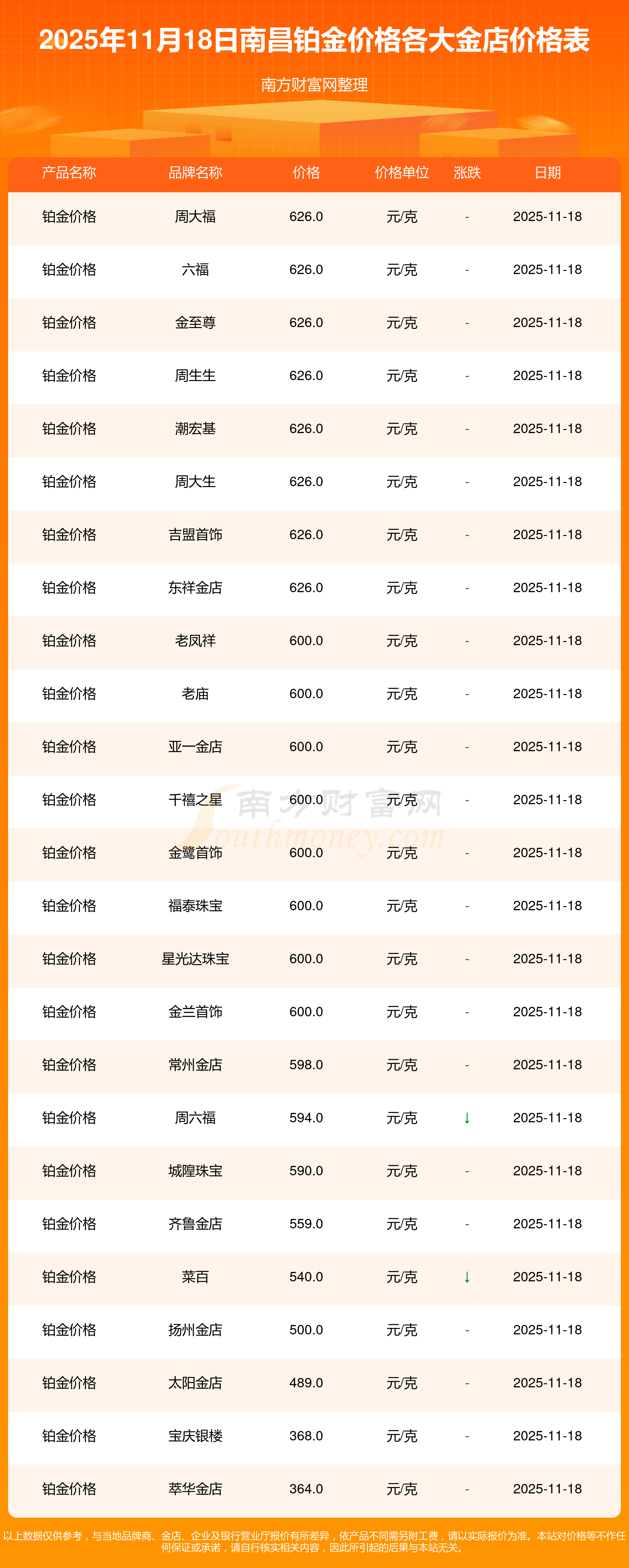 不同的金店为什么黄金的价格相差那么大?2025年11月18日南昌各金店铂金价格表来了