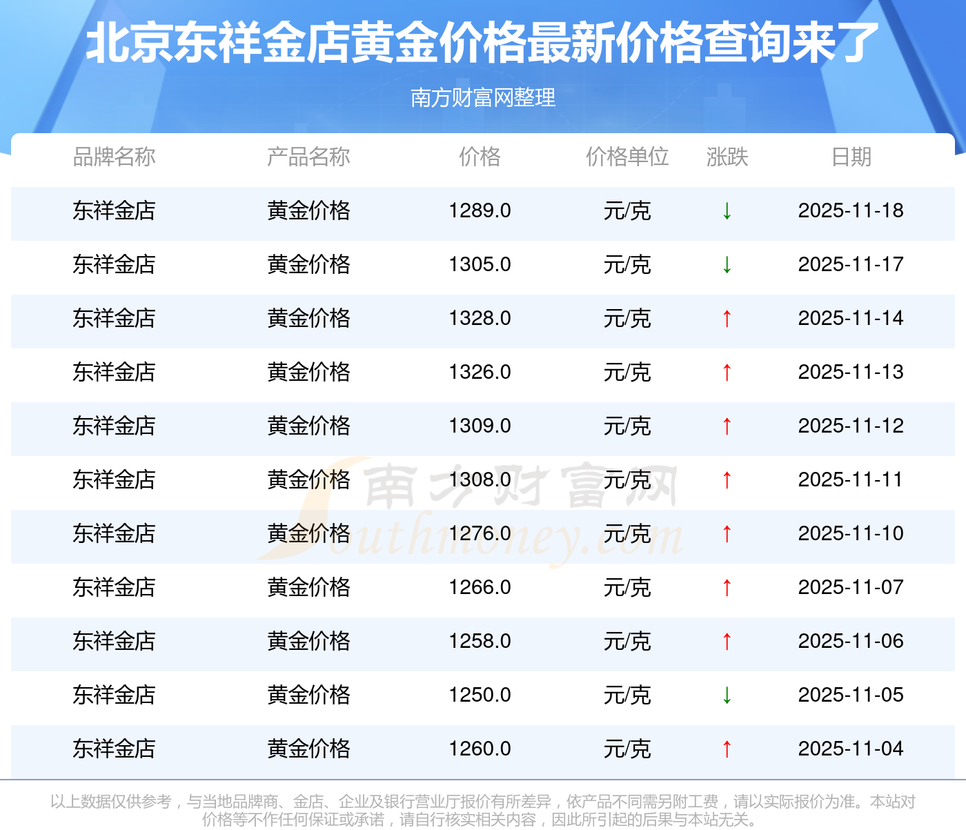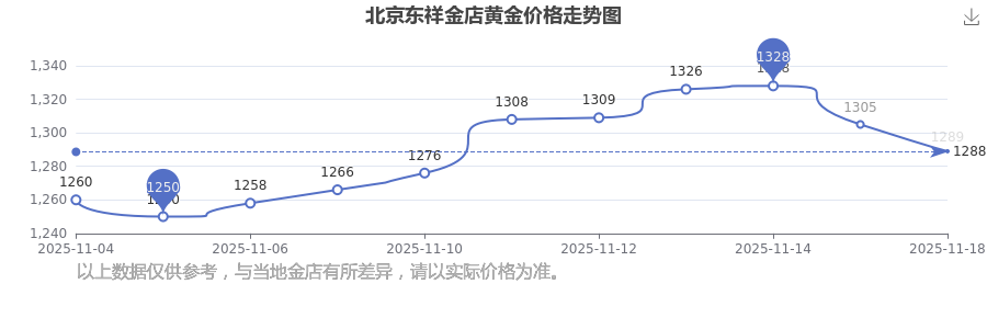 今日北京东祥金店黄金价格查询,北京东祥金店黄金价格在 2025年11月18日为 1289.0元/克。