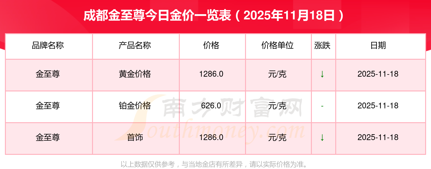 成都金至尊每克黄金在市场上卖多少钱:黄金价格1288.0元/克,铂金价格626.0元/克,饰品金价(内地)1288.0元/克,黄金饰品(香港)44770.0,铂金价格(香港)17820.0,金条价格(香港)40390.0,金条金价(内地)1127.0元/克,黄金价格1285.0元/克,铂金价格600.0元/克,足金价格1285.0元/克,黄金价格1257.0元/克。