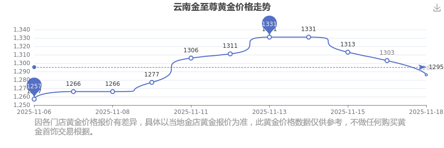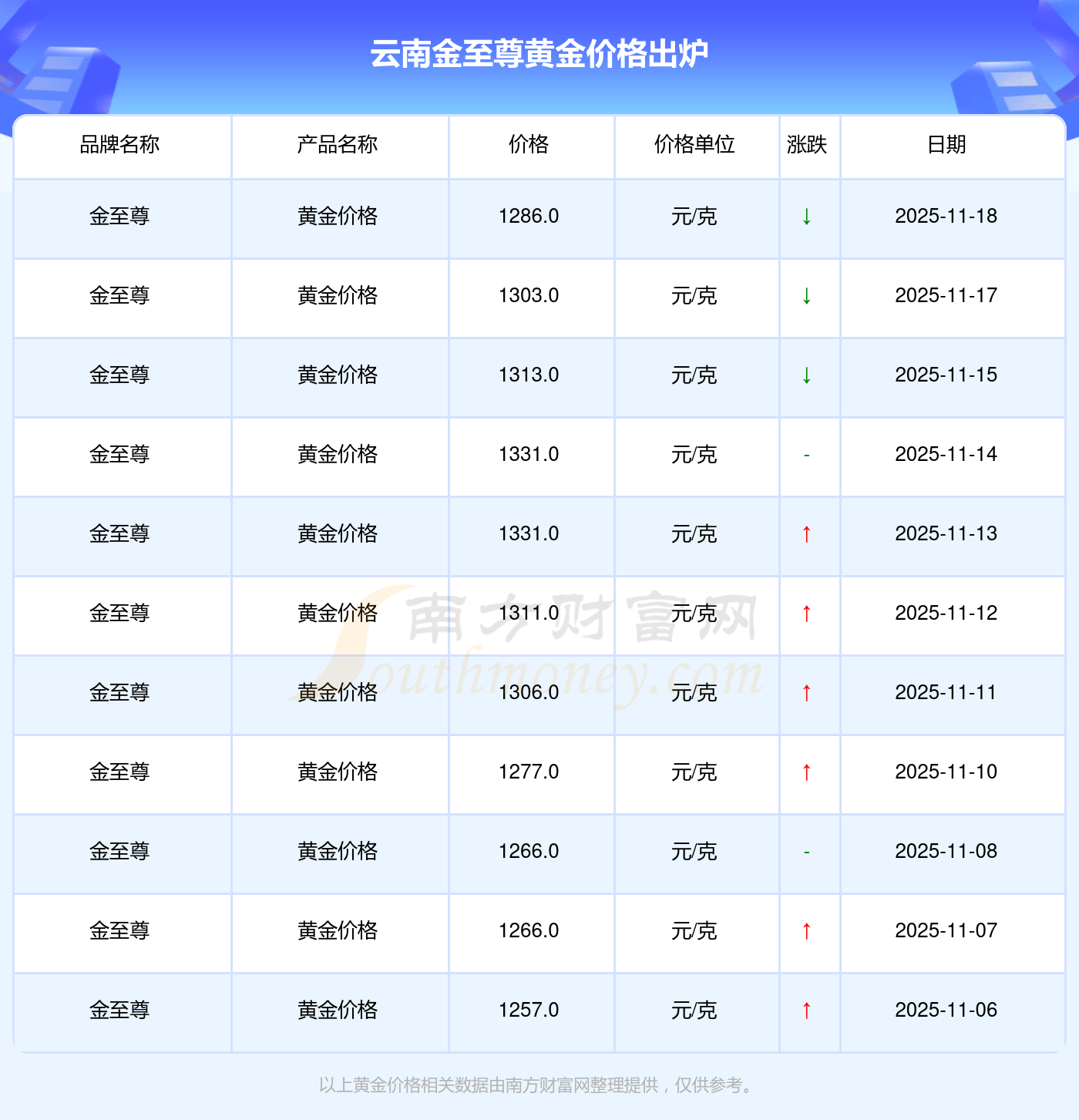 2025年11月18日当天,云南金至尊黄金价格的单价是 1286.0元/克。