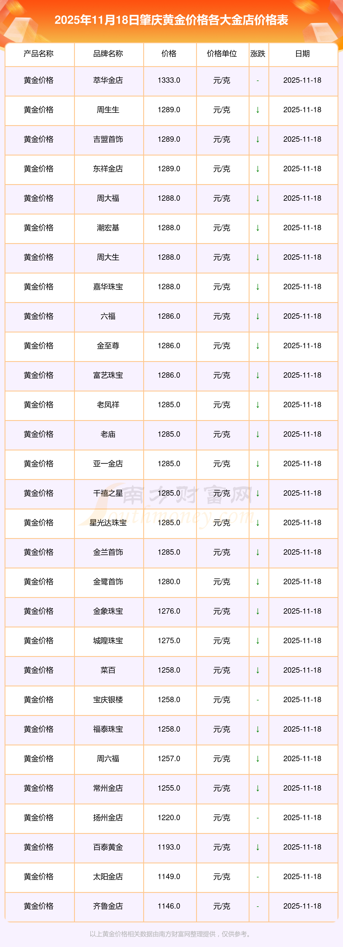 一、肇庆各金店黄金价格是多少钱?2025年11月18日肇庆各金店黄金价格汇总