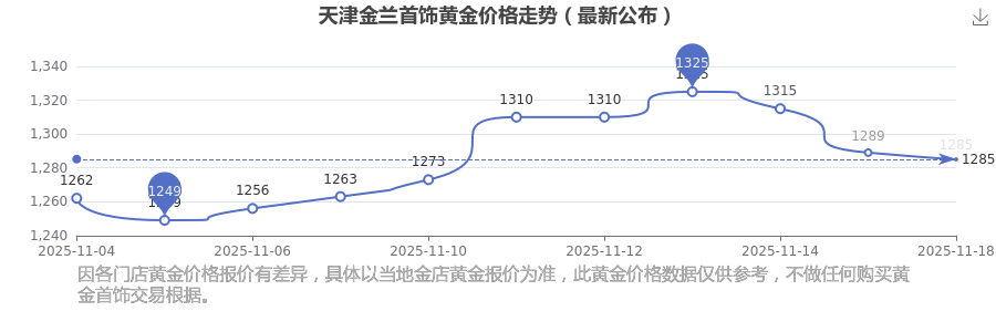 今日天津金兰首饰黄金价格最新为:1285.0元/克。
