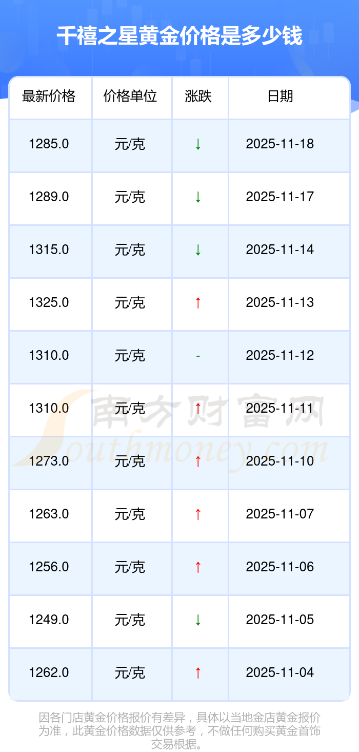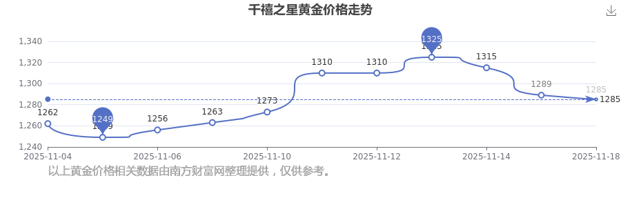 据了解,千禧之星今日黄金价格为1285.0元/克。