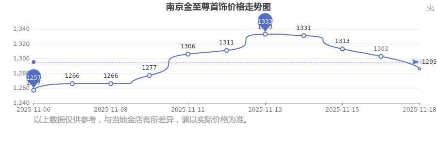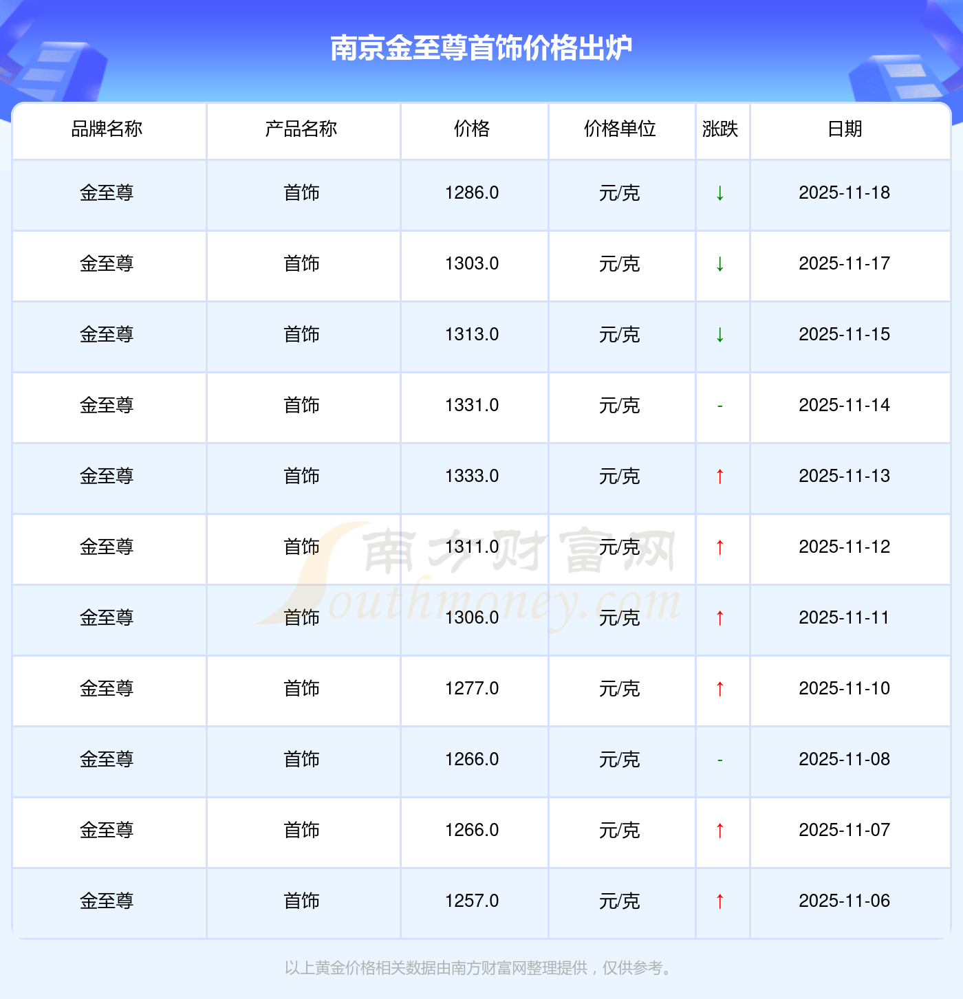 南京金至尊的首饰在今日(2025年11月18日),每克售价为1286.0元/克。