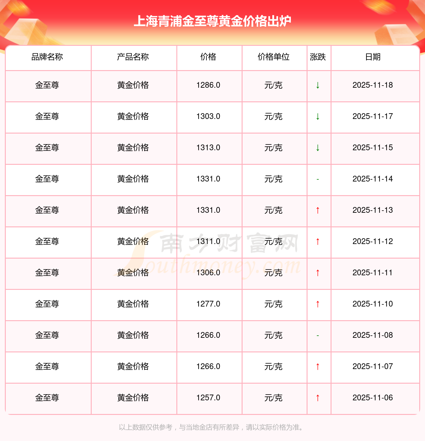 2025年11月18日,周大福、周大福、周大福、周大福、周大福、周大福、周大福、老凤祥、老凤祥、老凤祥、周六福等各大金店品牌黄金价格今日价格如下:周大福1288.0元/克、周大福626.0元/克、周大福1288.0元/克、周大福44770.0、周大福17820.0、周大福40390.0、周大福1127.0元/克、老凤祥1285.0元/克、老凤祥600.0元/克、老凤祥1285.0元/克、周六福1257.0元/克。