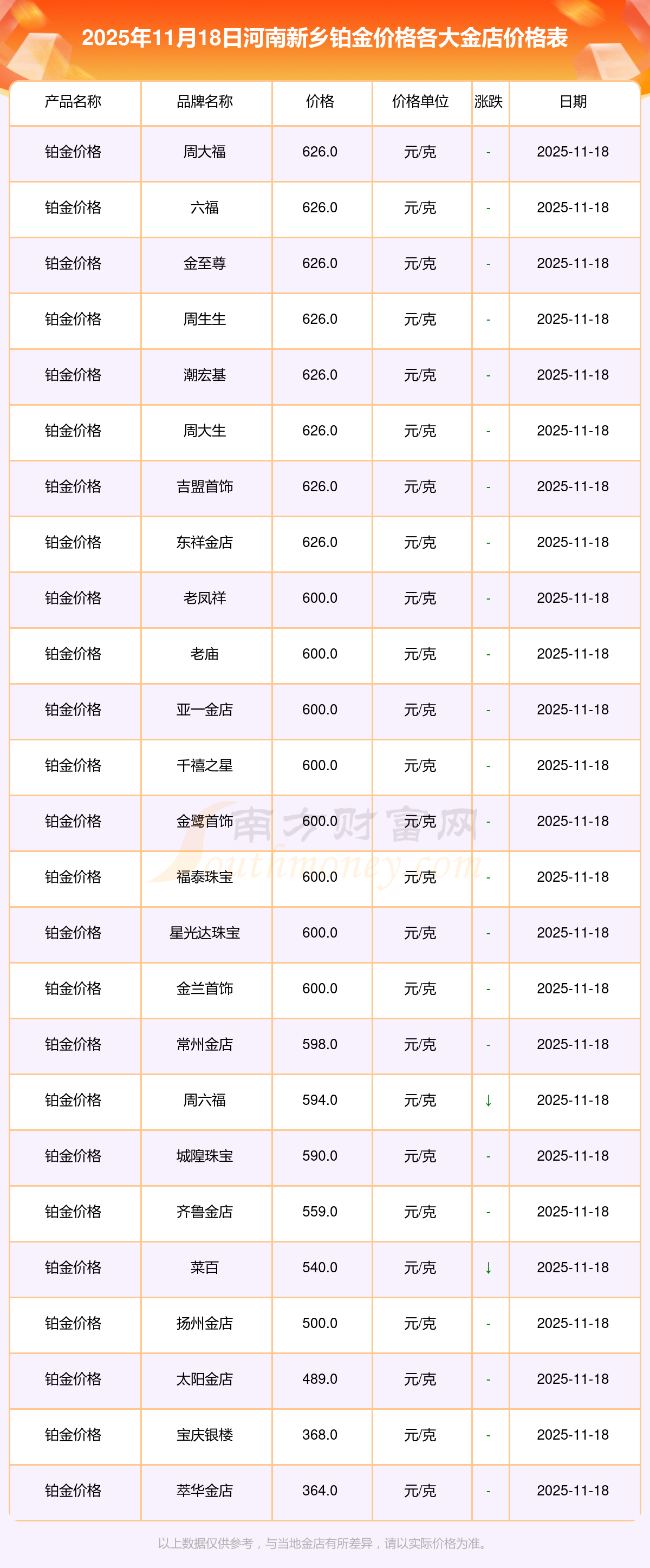 一、 河南新乡各金店铂金价格多少钱1克?河南新乡各金店铂金价格最新详情