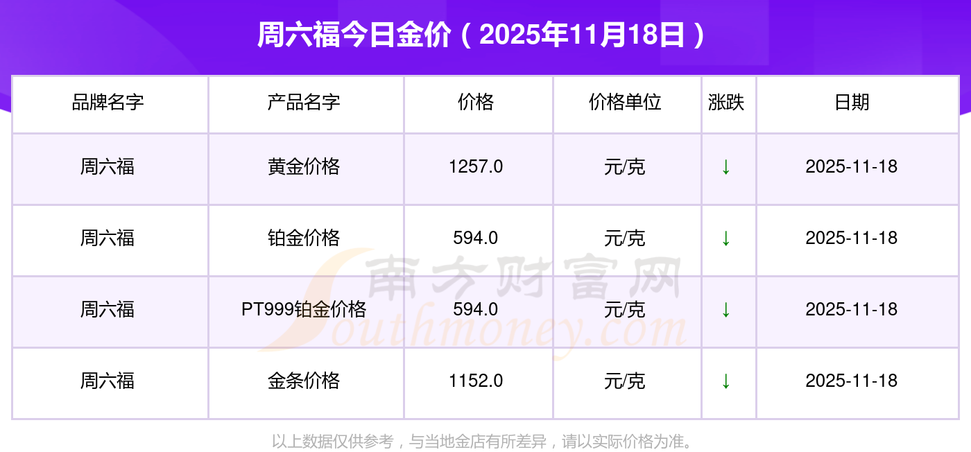 周六福金价今日价格:黄金价格1288.0元/克,铂金价格626.0元/克,饰品金价(内地)1288.0元/克,黄金饰品(香港)44770.0,铂金价格(香港)17820.0,金条价格(香港)40390.0,金条金价(内地)1127.0元/克,黄金价格1285.0元/克,铂金价格600.0元/克,足金价格1285.0元/克,黄金价格1257.0元/克。