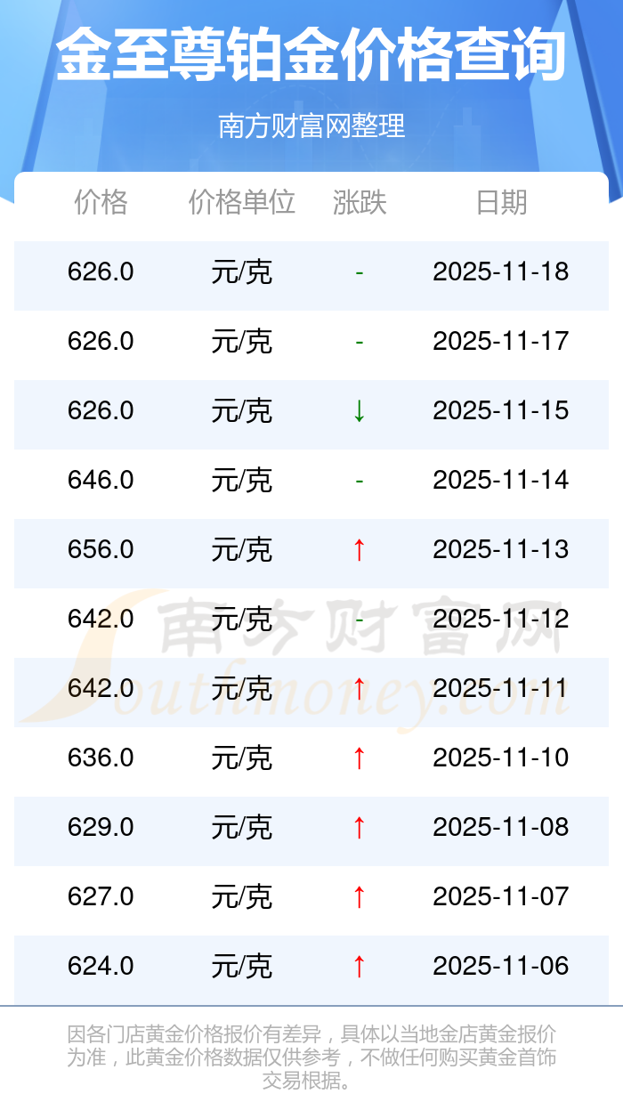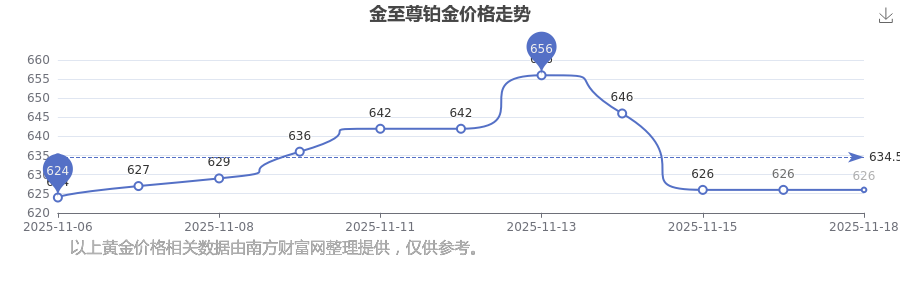 2025年11月18日金至尊铂金价格最新为626.0元/克。