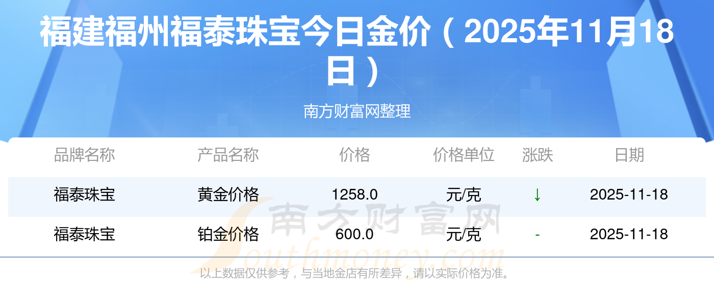 2025年11月18日福泰珠宝金条多少钱1克 现在福建福州福泰珠宝黄金价格查询