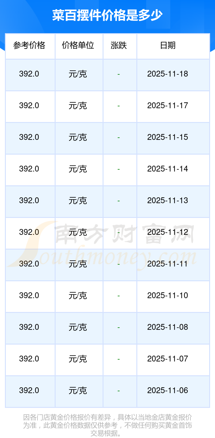以上数据仅供参考,与当地品牌商、金店、企业及银行营业厅报价有所差异,依产品不同需另附工费,请以实际报价为准。本站对价格等不作任何保证或承诺,请自行核实相关内容,因此所引起的后果与本站无关。