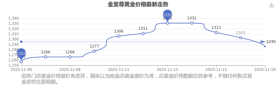 今日黄金价格具体多少?当下每克黄金值多少钱呢?黄金是一种优良的导电导热材料,具有良好的导热特性。黄金常用于电子工业中的特殊电路设计,因其化学稳定性高、抗氧化性强,可制作高精度电子元件。2025年11月19日金至尊黄金价格最新是1286.0元/克。